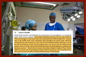 Both reports state that western sanctions eroded Zimbabwe’s tax base by 92%, reduced the government’s contribution to healthcare from 15% of GDP to 7%, which prevented the country from maintaining its system, buying medicines and medical equipment, and led to the loss of doctors, nurses, tutors, midwives, and technicians.
